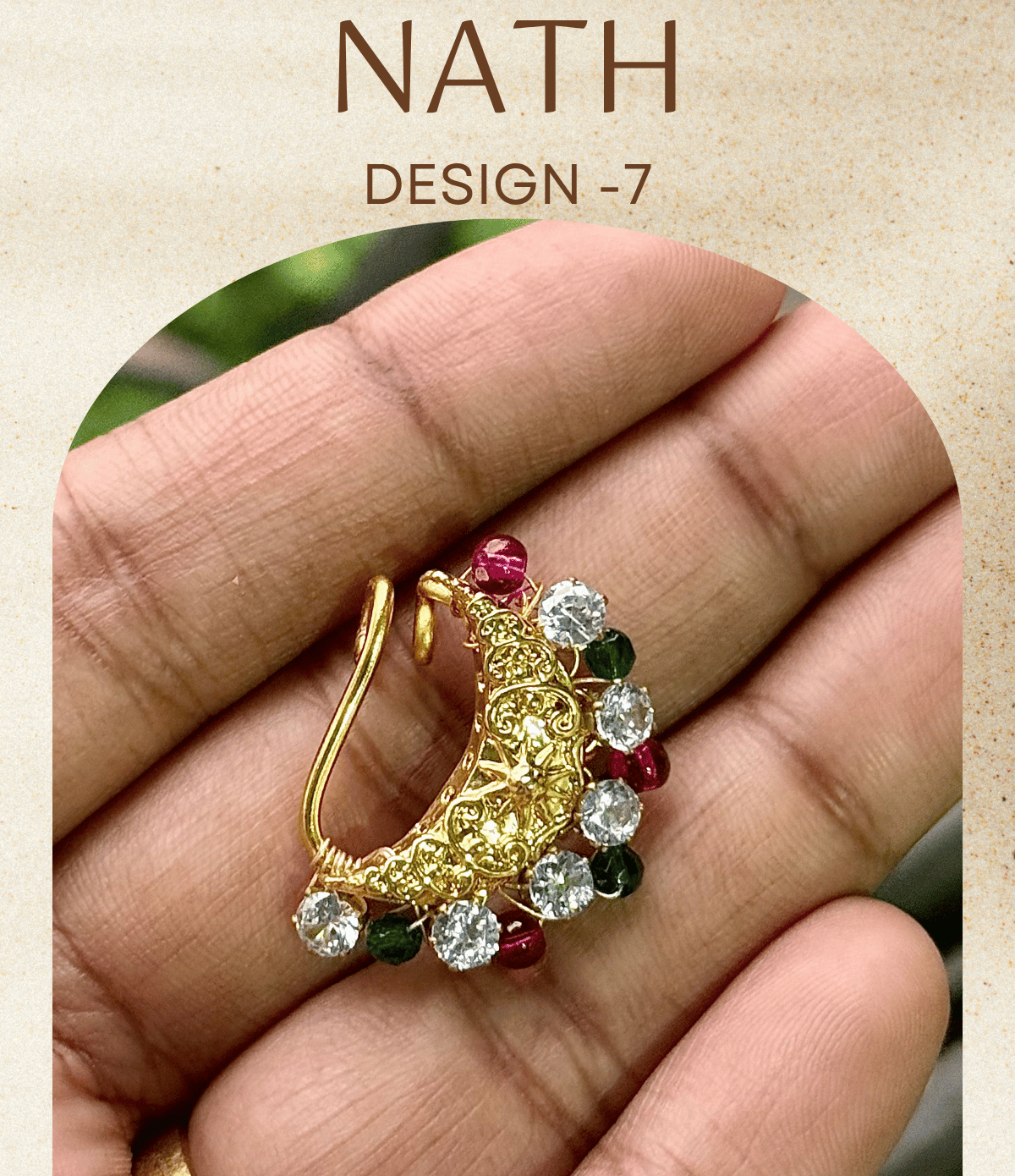 No Maharashtrian ensemble is truly complete without the regal elegance of a Nath. It is more than an ornament; it is a symbol of marital bliss, cultural pride, and timeless grace that has adorned the faces of women for generations.