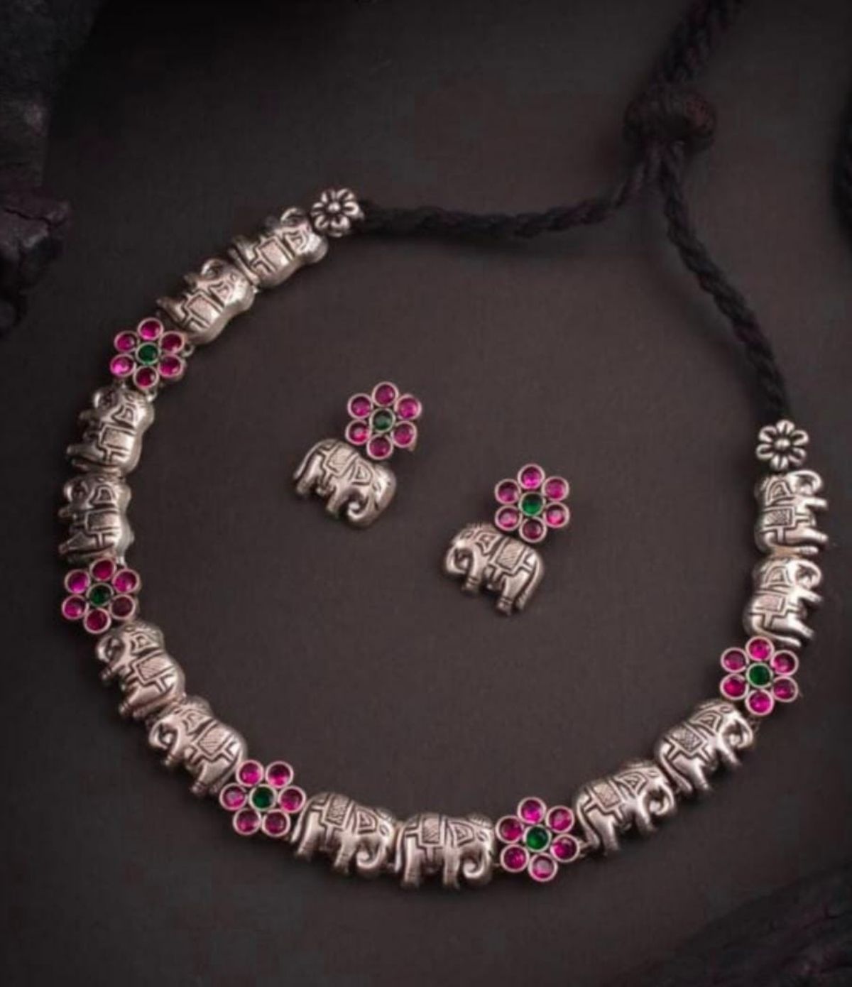 A chic and lightweight German silver necklace featuring a charming elephant motif. A perfect everyday accessory for a touch of ethnic flair.
